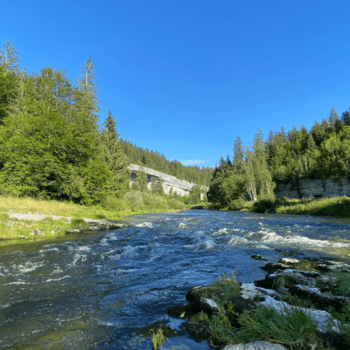 Au cours d'une croisière dans le premier site naturel régional classé Grand Site National. Naviguez au cœur des impressionnants canyons des Bassins du Doubs. Un spectacle grandiose façonné par la nature. Glissant paisiblement au fil de l’eau, vous apprécierez l’exceptionnelle beauté du paysage. Une escale à la chute vous permettra d'accéder aux belvédères dominant le Saut du Doubs, chute de 27 mètres (durée de la croisière-promenade avec escale : 2h15 environ).
