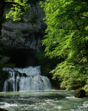Le Saut du Doubs plonge le visiteur dans le bain rafraîchissant d’un spectacle eau et lumière de toute beauté. Pris en tenaille entre de hautes falaises (françaises rive gauche, suisses rive droite), le Doubs largue les amarres pour une chute de 27 mètres de haut. Il explose en millions de gouttelettes d’eau dans un fracas assourdissant. Ce Niagara français, classé Grand site national, est accessible à pied, par bateau ou en calèches. Deux belvédères sécurisés permettent de prendre la pleine mesure de cette cataracte animant un superbe canyon sauvage. Le Saut du Doubs est la chute d’eau qui fait déborder le vase des émotions au terme d’une approche empruntant le défilé des Bassins du Doubs aux accents de fjord norvégien.