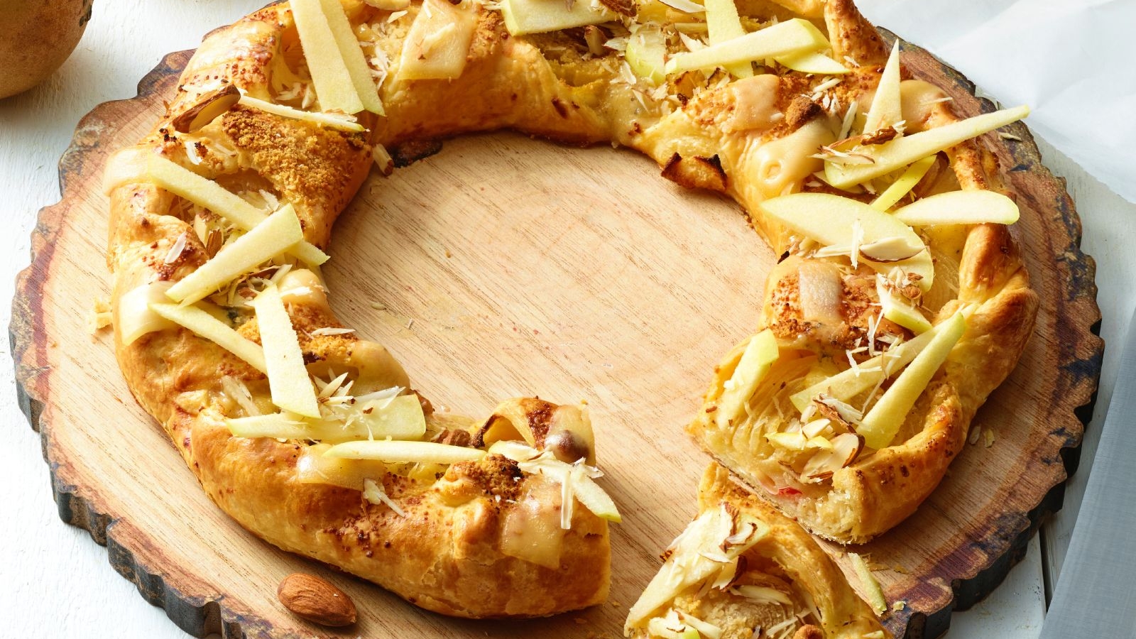 Couronne de pommes, crème d’amande au Morbier et amandes effilées