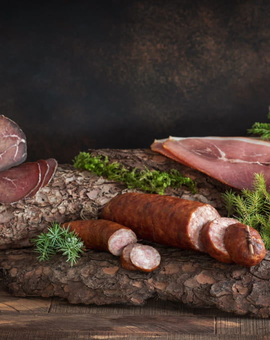 Bien sûr, pour déguster une délicieuse fondue au comté, il faut bien évidemment chercher du côté des salaisons du Doubs. Pour les plus gourmands : saucisse de Morteau ou de Montbéliard et pour les plus raisonnables, Jésus de Morteau, jambon cru ou fumé de montagne, palette, brési... Le tout avec des pommes de terre, cuites à l'eau ou dorées au four. Et pourquoi pas quelques feuilles de salade verte pour alléger le tout ? Variez les plaisirs selon les goûts.