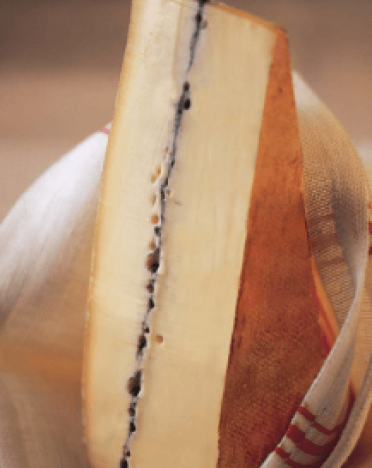 - la vue : une croute lisse, très fine, teintée de notes orange. Sur toute la tranche, on observe une fine ligne de cendre noire qui traverse la pâte, et parfois même, quelques petits trous ronds.