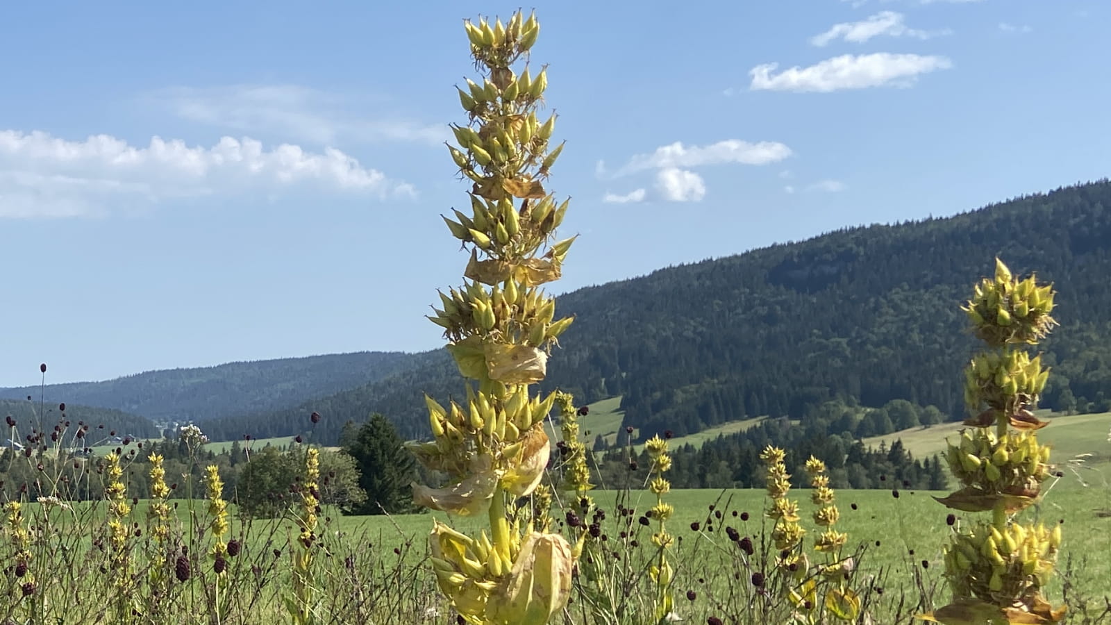 Elle règne sur les prairies du Mont-d'Or. L'incontournable gentiane, plante emblématique des montagnes du Jura présage, en fonction de sa hauteur, de l'épaisseur de neige qui tombera dans le Haut-Doubs.