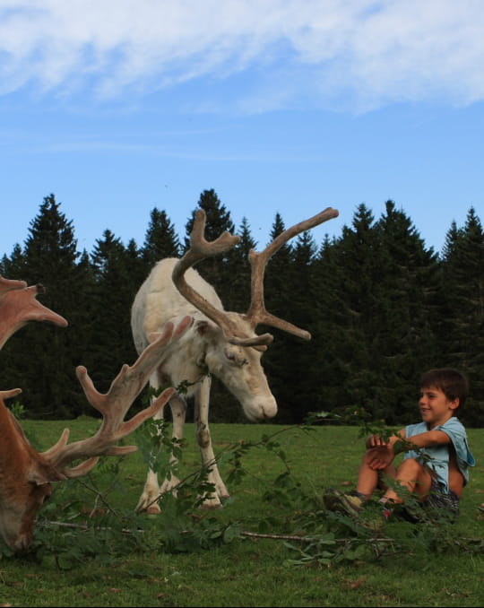 Ce n'est pas un zoo. C'est un petit bout de toundra ouvert au cœur des vastes combes et forêts d'épicéa du Haut-Doubs nordique. Ici se cotoyent en parfaite symbiose rennes, yaks, chevaux konik polski, aurochs, bisons européens, cerfs élaphe, daims, mouflons corses et marmottes. Sur 10 hectares, dans la somptueuse forêt du Risoux, immergez-vous dans un monde animal fascinant.