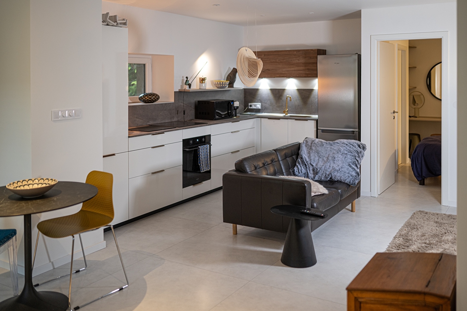 Eothilée, un cocon discret et élégant pour 2 hôtes, offrant cuisine équipée, chambre agréable, salle de vain caffinée, dans un cadre arboré avec parking.
