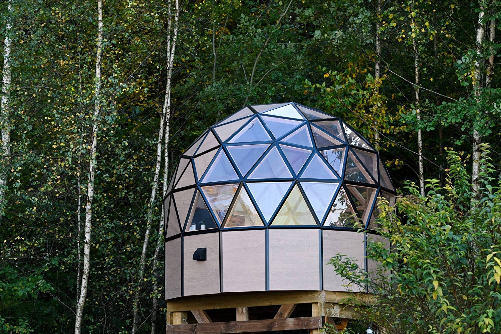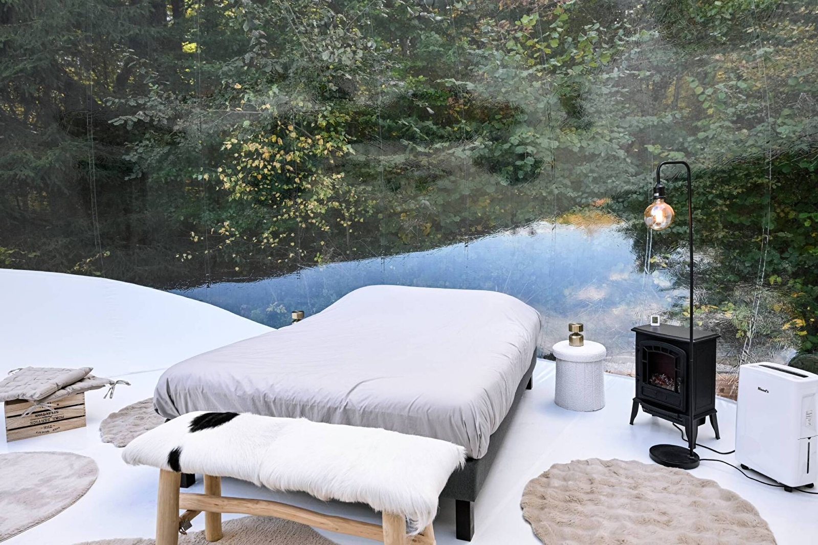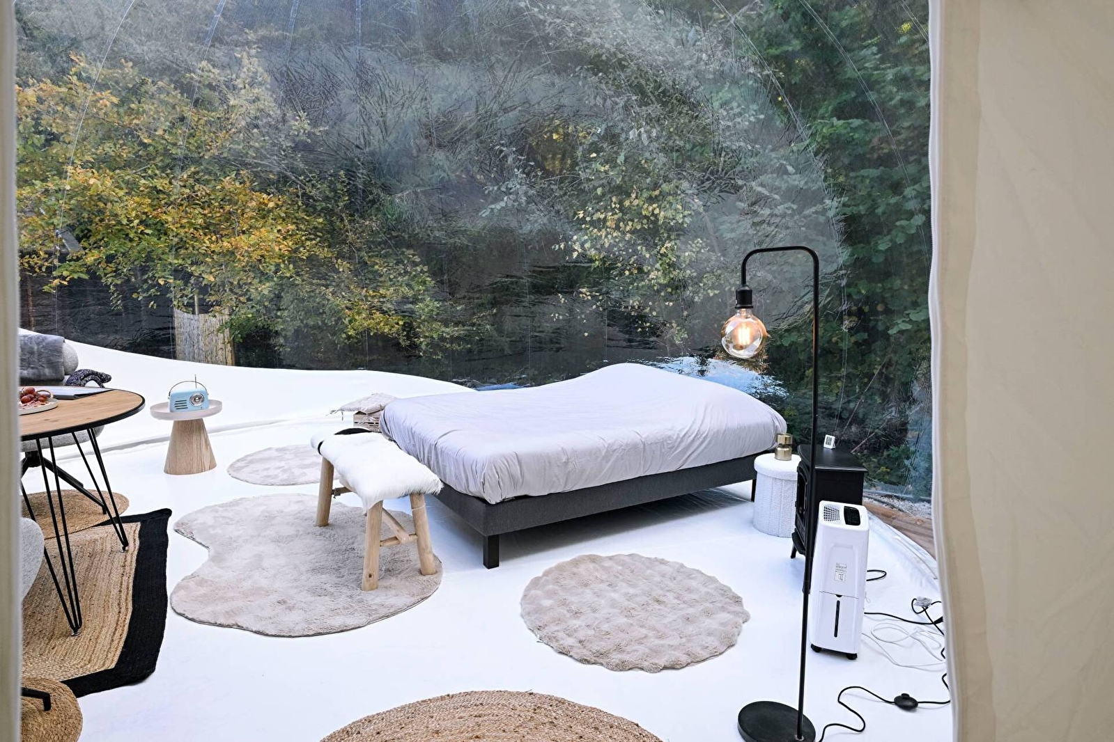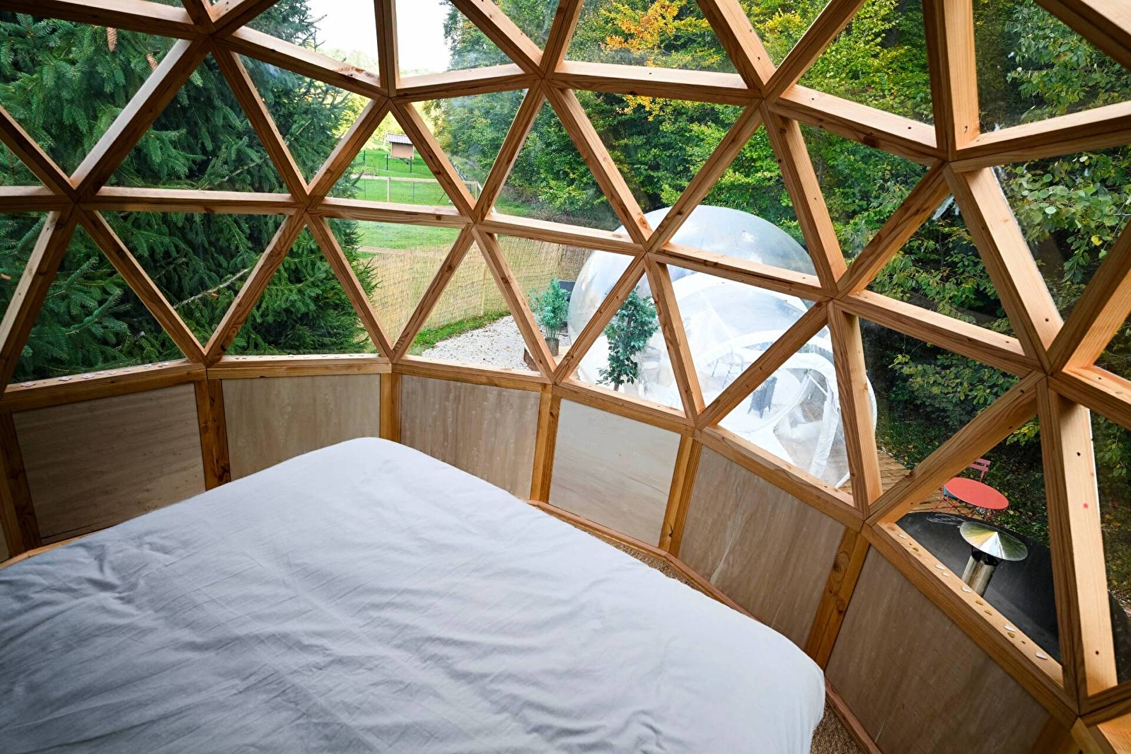 Succombez au charme du grand dôme d’Olia, un hébergement insolite et spacieux, conçu pour 2 à 4 personnes. Véritable bulle de sérénité sur deux niveaux, sa transparence vous plonge au cœur de la nature pour une expérience féérique, entre ciel et verdure. Détendez-vous dans votre bain nordique privatif, profitez d’une terrasse exclusive et laissez-vous bercer...