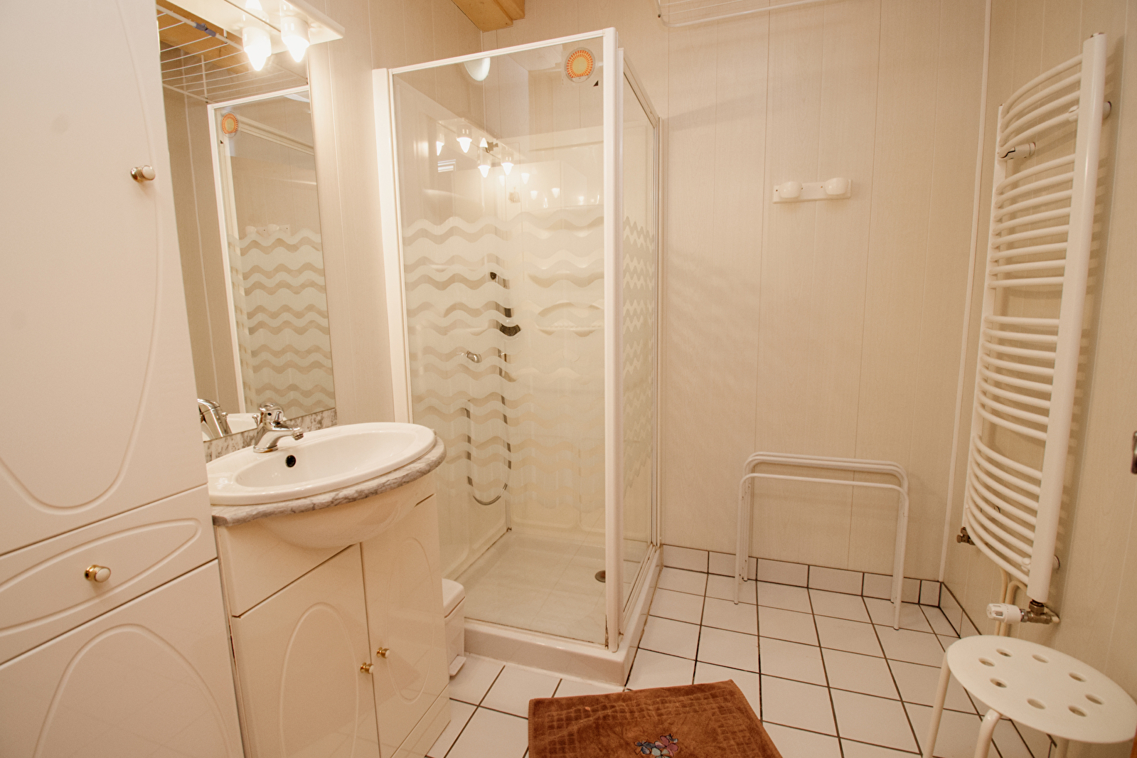 Situé au milieu de la ferme, l'appartement se compose d'une grande salle de vie avec coin cuisine, espace repas et salon avec canapé lit pouvant être séparé par un rideau, et aussi d'une chambre avec un lit double et un lit simple, une salle de bain avec douche et un wc séparé.