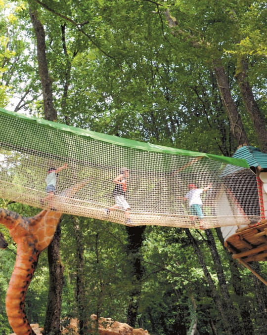Au sommet des arbres, un village de cabanes reliées par un parcours de filets dans lesquels on évolue de branche en branche, de grands toboggans pour descendre, des jeux au sol… Cette récente attraction du parc de loisirs des Campaines à Accolans est, sous la thématique des contes et légendes de Franche-Comté, une activité à la fois ludique et culturelle à pratiquer en famille.