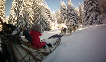 Vivez l'osmose entre l'homme et les chiens en plein coeur des forêts pour vous immerger dans une ambiance polaire somptueuse que vous n'êtes pas près d'oublier...