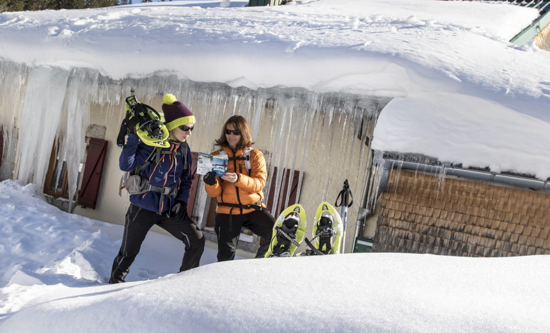 Randonner à raquettes, c'est s'élancer en hors piste balisé en s'éloignant des lieux courus. Car ici, pas de piste, pas de dammage, seuls les jalons GTJ vous guideront dans la poudreuse. En solo, en famille ou entre amis, accordez-vous un moment unique de retour sur soi.