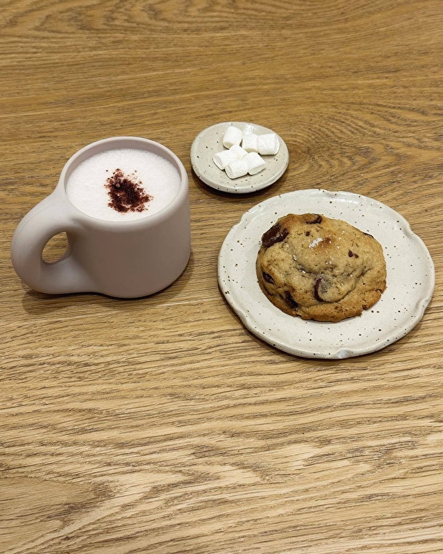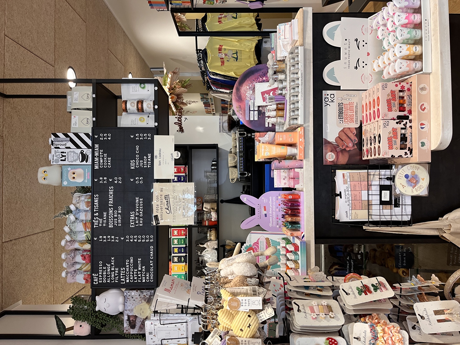 La carte privilégie les produits locaux et les collations faites maison, allant des pâtisseries artisanales aux boissons chaudes et jus de fruits sélectionnés.