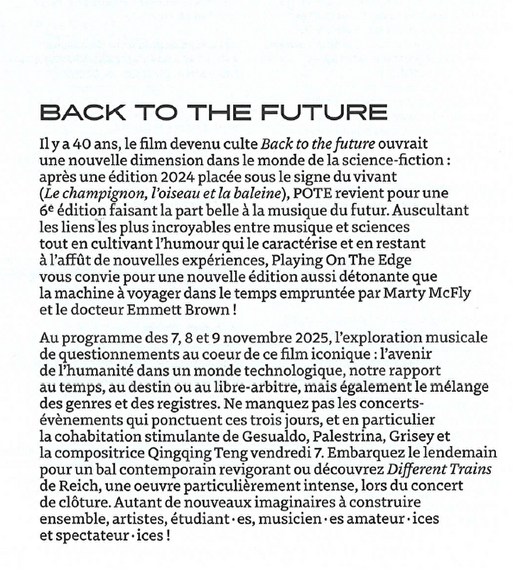 Un festival, un forum, une attitude : POTE – Playing On The Edge entend créer une véritable communauté artistique animée par le décloisonnement de la musique classique. Concerts-concepts, échanges musicaux, fêtes de musique de chambre ou jam sessions participatives rassemblent un public large et curieux autour de démarches inédites.